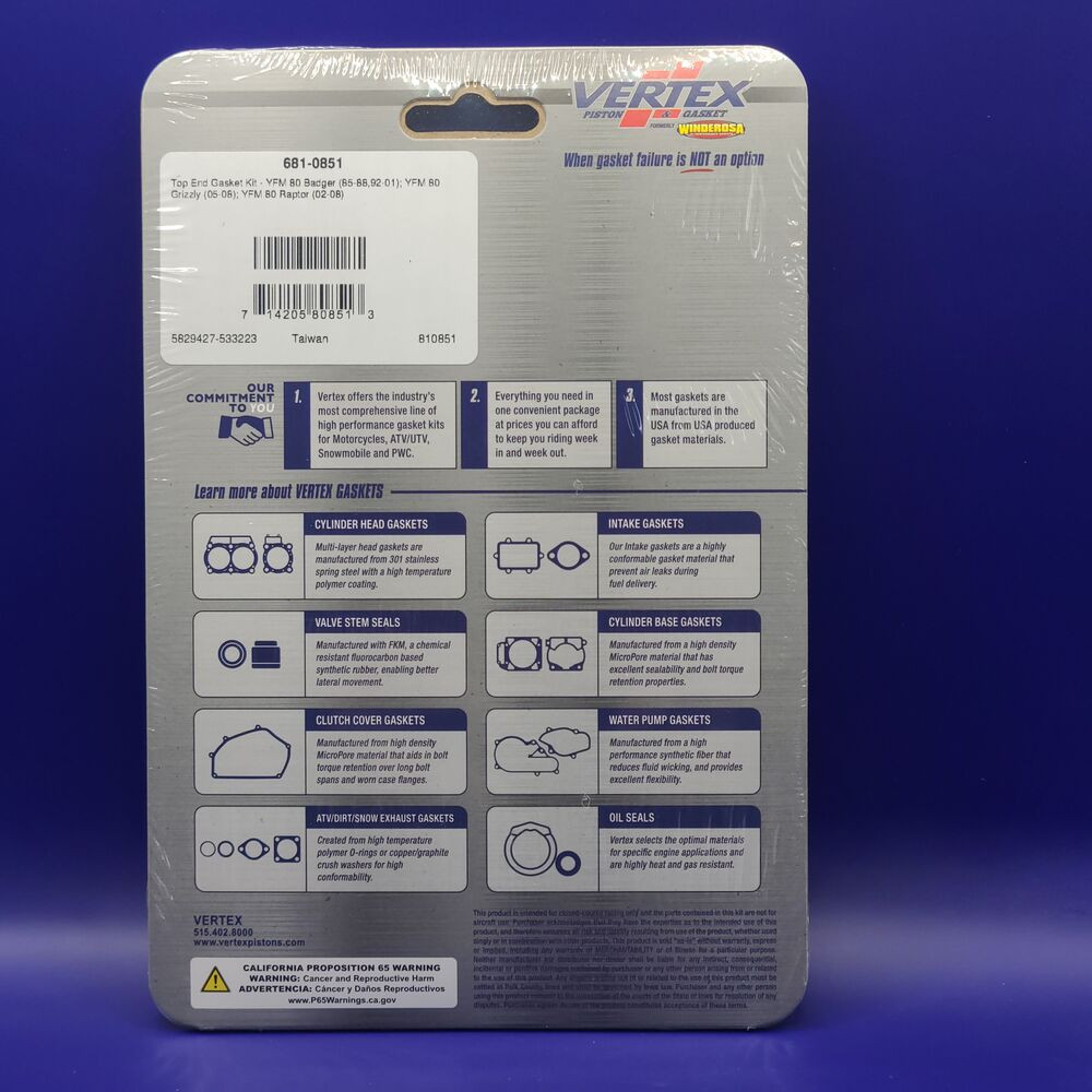 ( 1 ) New Vertex Top End Gasket Kit PN 6810851